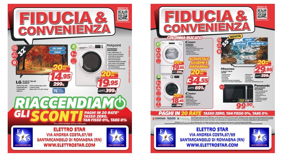 Dal 21 Ottobre noi di Elettro Star riaccendiamo gli sconti! Potrai trovare tutti i migliori prodotti di elettronica a prezzi scontati, anche in 20 rate a tasso zero!