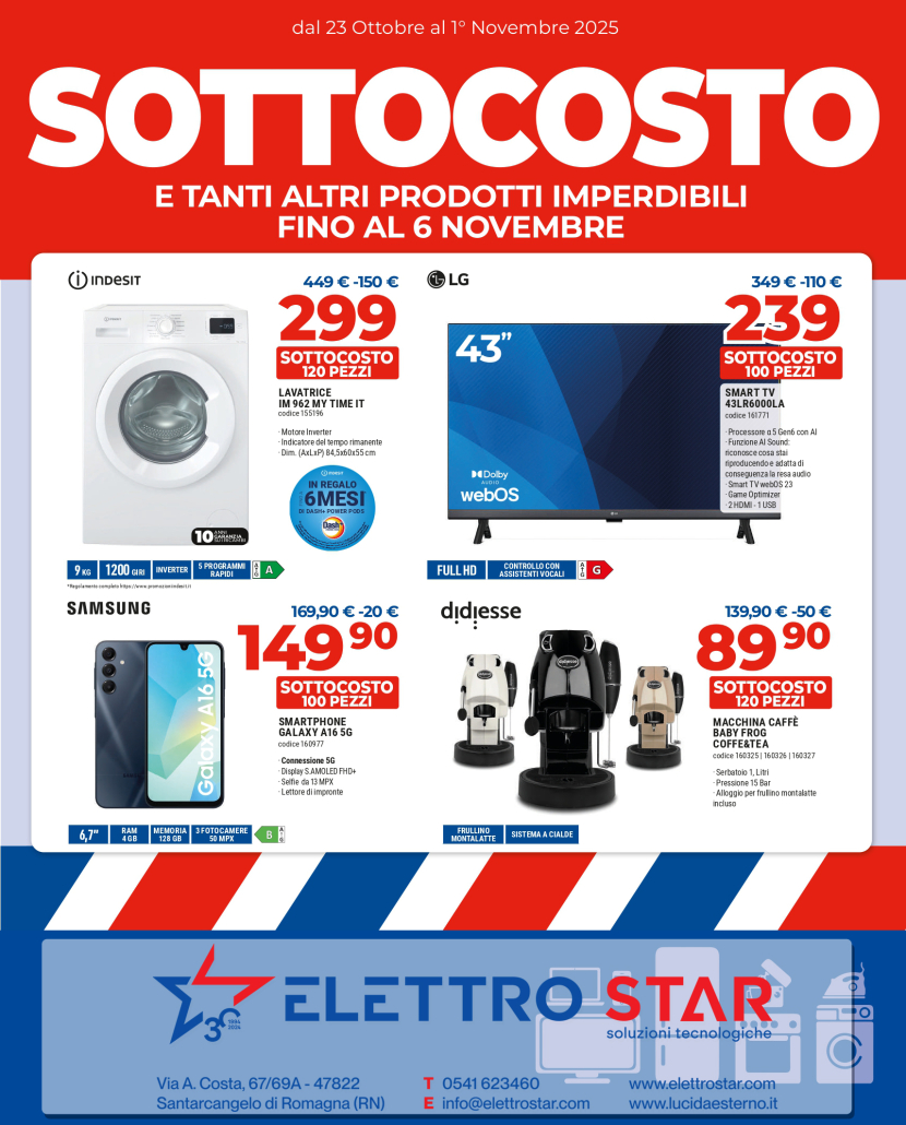 Elettro Star: dal 23 Ottobre al 1 Novembre 2025 arriva il Sottocosto! Offerte Imperdibili su TV, Smartphone, Elettrodomestici e Tech