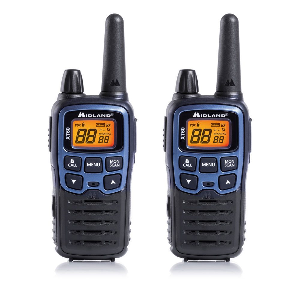 Ricetrasmittente Coppia Midland XT60 PMR446 C1179 – Dual Band 69 canali LPD + 24 canali PMR446 (8+16 pre-programmati), 38 toni CTCSS, tasto CALL, retroilluminazione display, funzione VOX, funzione SCAn, manopola per regolazione volume, caricatore rapido (3 ore).